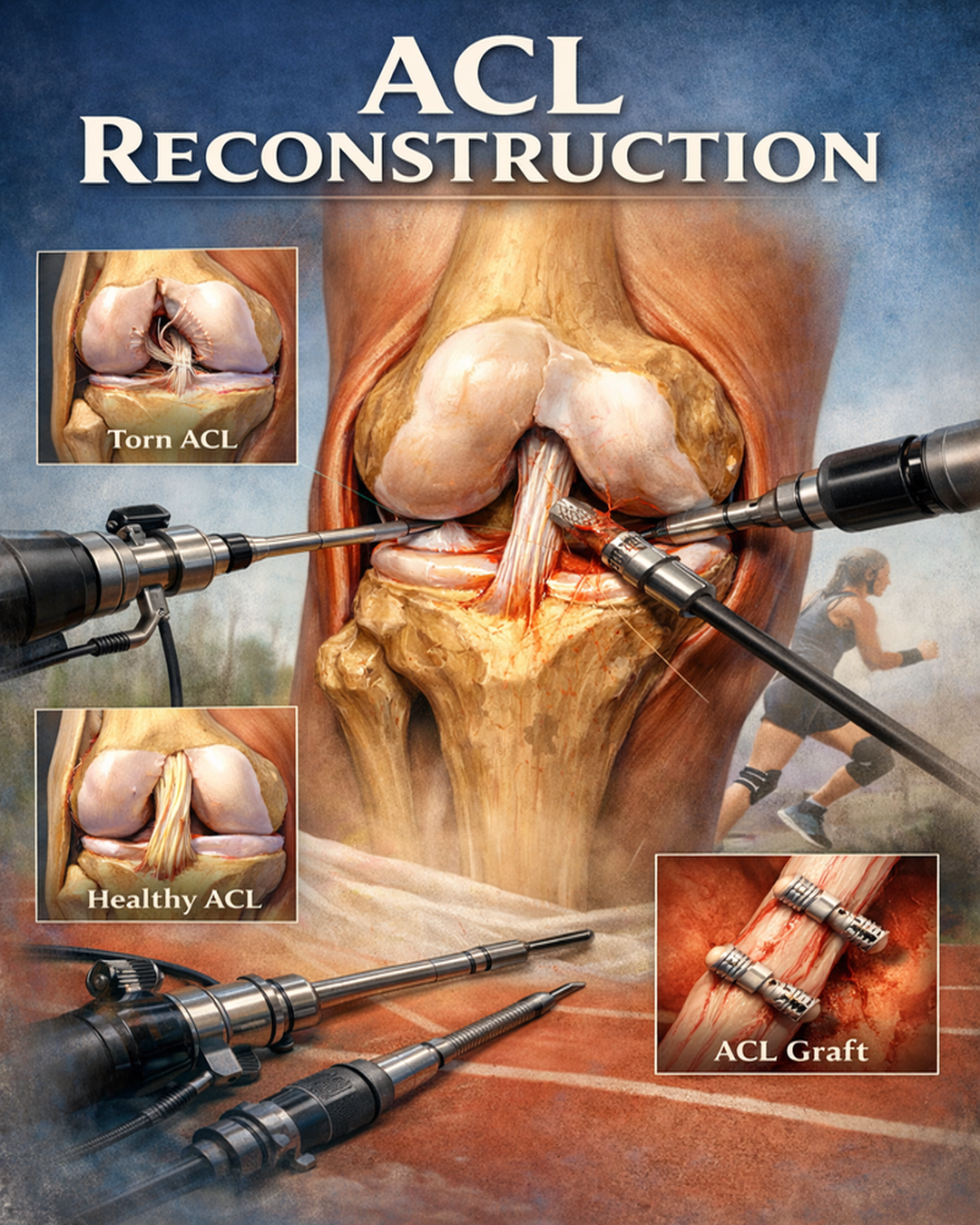 The procedure involves replacing the torn ligament with a graft, usually from the patient's own tissue, to reestablish knee function. Advanced arthroscopic techniques allow minimal incisions, faster recovery, and reduced pain. Patients regain better control, improved balance, and greater mobility after rehabilitation.